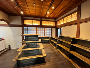 新しい拠点としつつも、つるや隠宅の面影も残した名称「石畳の驛つるや」(いしだたみのえき つるや)が2024年3月にオープン。当事業(YUNOHIRA ART SIGHT )の連携施設として、内装や、展示用のスポットライトの導入、物産所の什器を制作するなど改装時点から協働させていただきました。